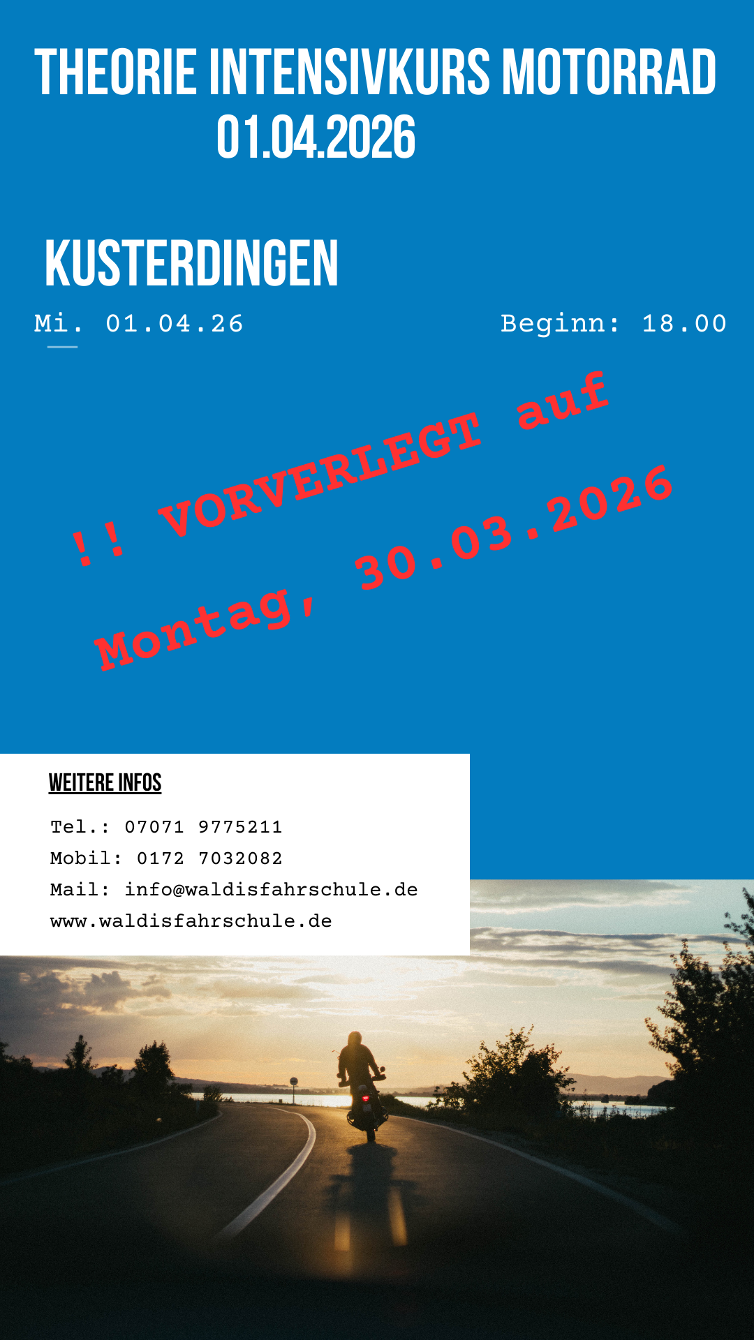 !! vorverlegt: Start: 30.03.2026 – in KUSTERDINGEN